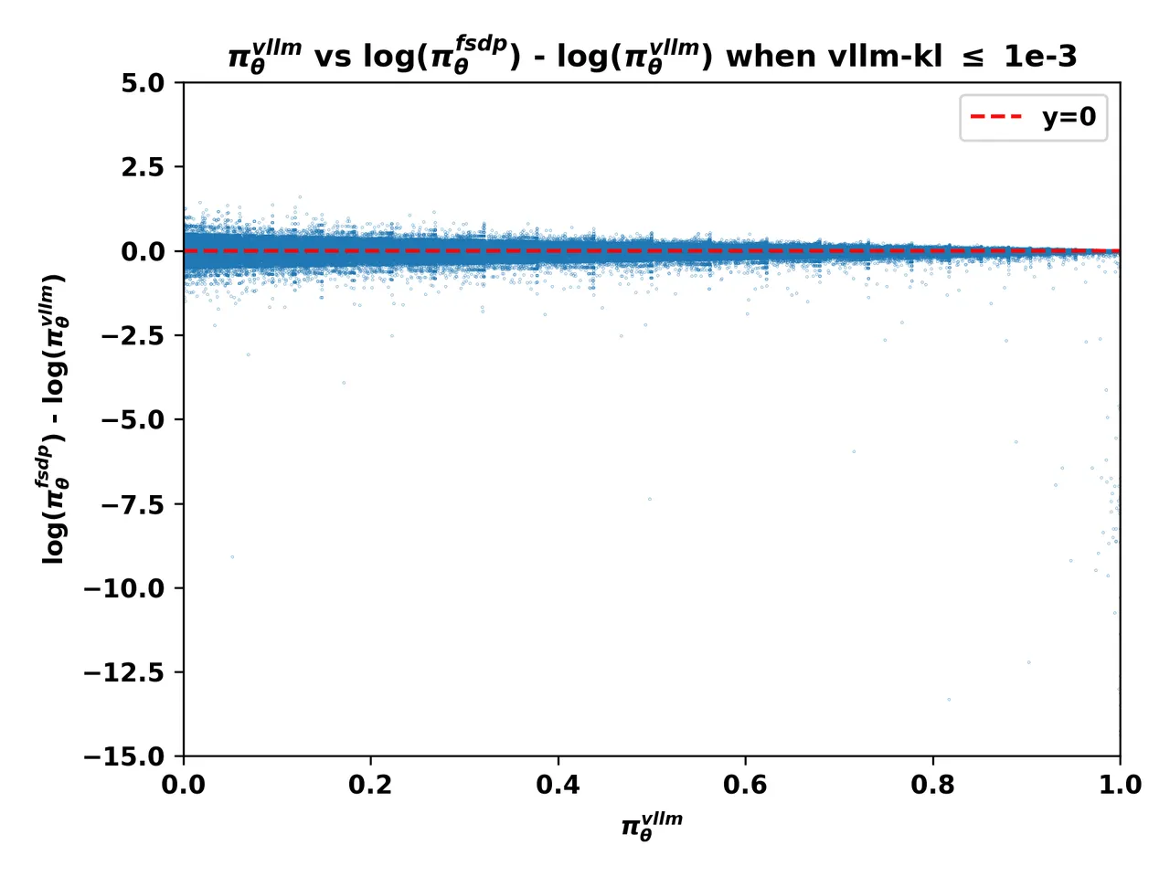 这个洞察意义其实不大,这个相关性不需要通过数学分析来找到这种洞察,vllm-kl很小,从数学上就能直接推导出 \frac{\pi_{fsdp}}{\pi_{vllm}} 会很发散